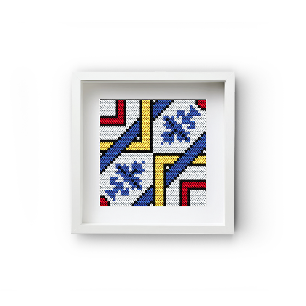 A dimensão total da peça, com moldura, é de 25x25cm.